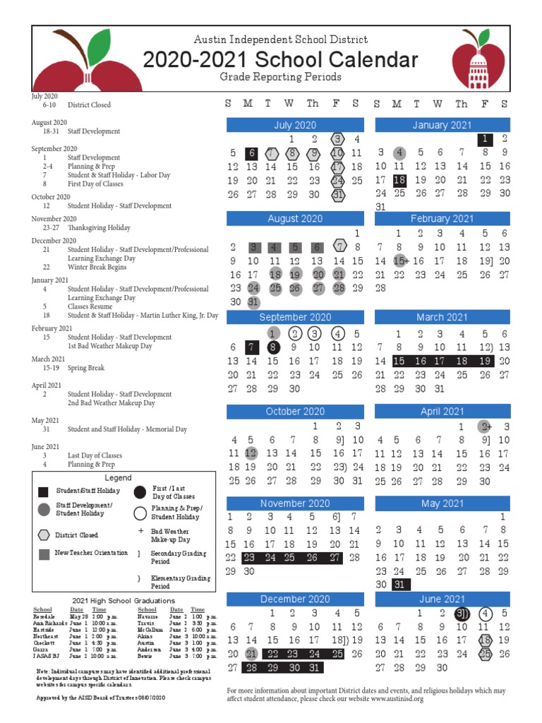 Teachers new to aisd report. Important district dates and events, and religious holidays which may affect student attendance,. The austin independent school district calendar includes.