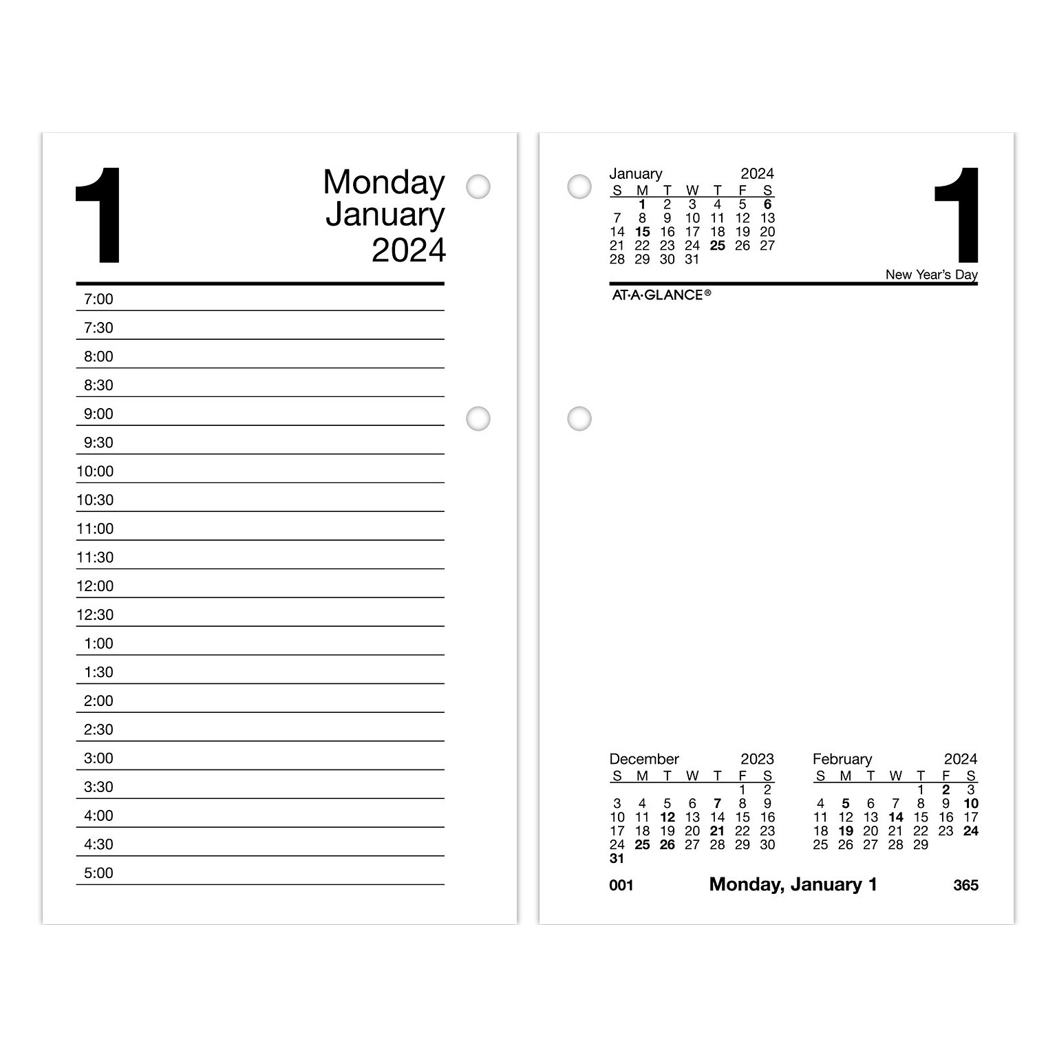 ATAGLANCE 2024 DAILY LooseLeaf Desk Calendar Refill with Monthly