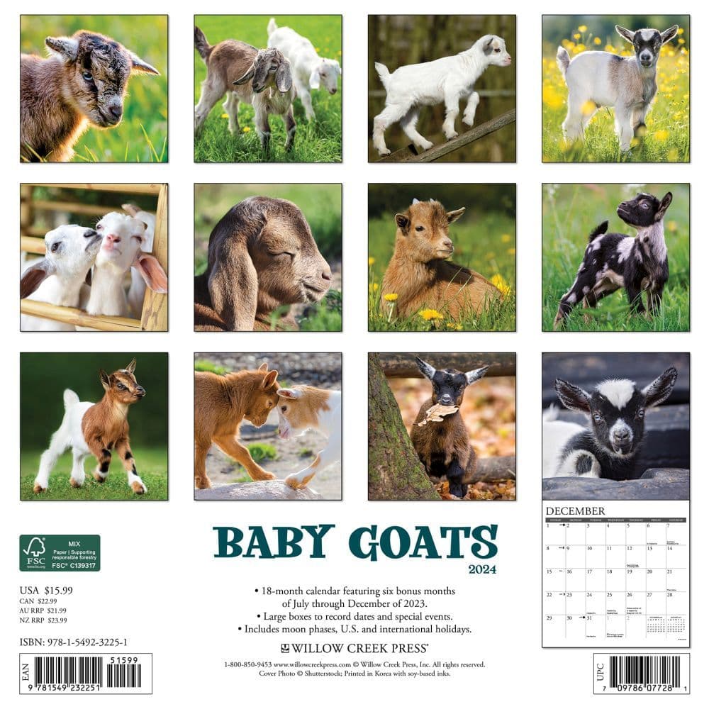 Treat yourself every day with a furry friend on this stunning baby goats calendar. Full year 2024 + 6 month bonus mini grid. Get fast,.