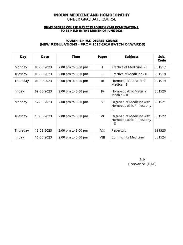 BHMS Syllabus Subjectwise 2023 Batch Academic Calendar Download Pdf 👇