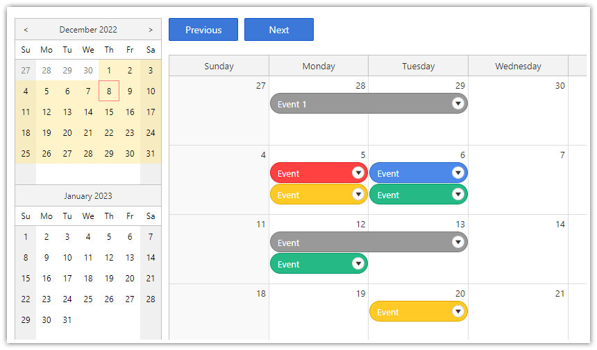 Weekly Event Calendar in Spring Boot/Java (OpenSource) DayPilot Code