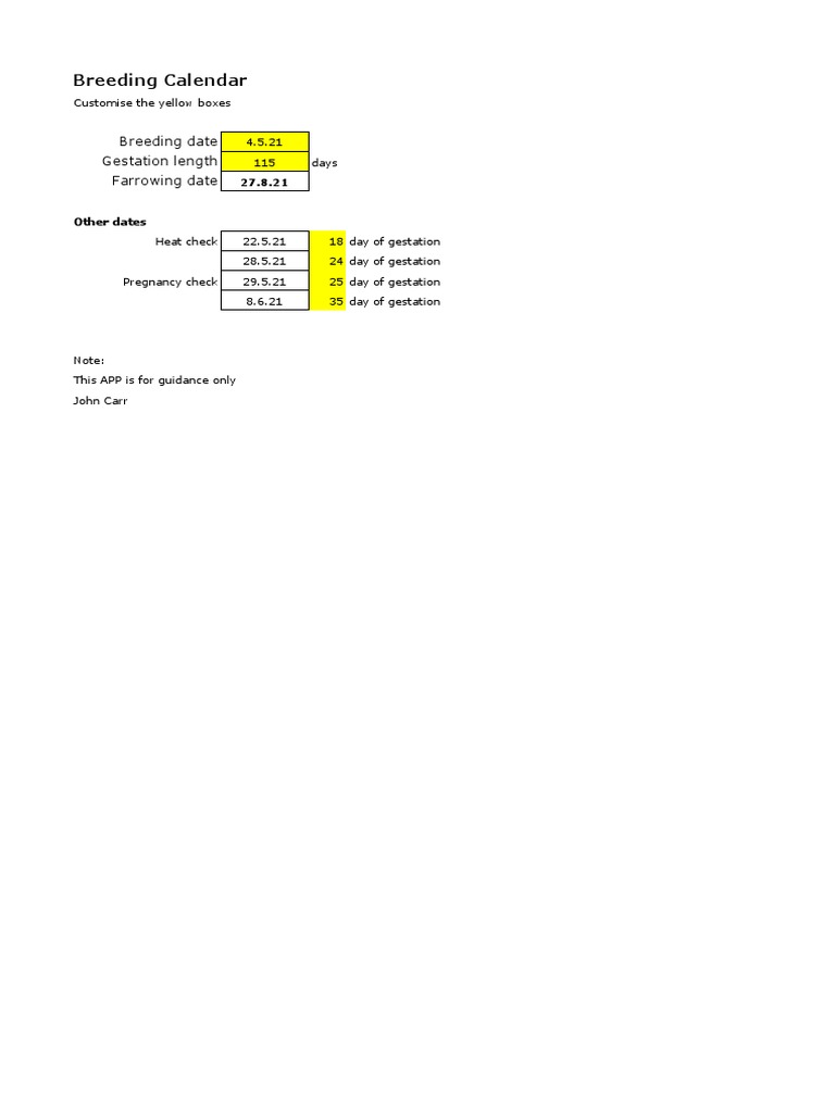 Breeding Calendar Breeding Date Gestation Length Farrowing Date PDF
