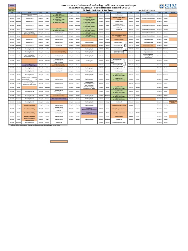 Academic Calendar Btech II III IV Year Odd Sem NCR 2019 2020 PDF