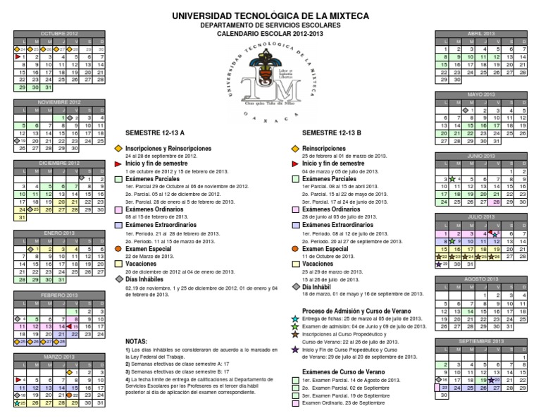 Calendario Escolar UTM Ciclo 20122013 PDF Calendario