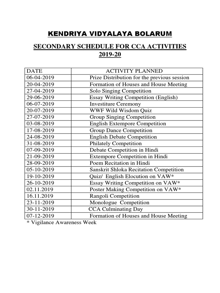 CCA CALENDAR OF ACTIVITIES 202223 KV Kankarbagh Library 1st shift