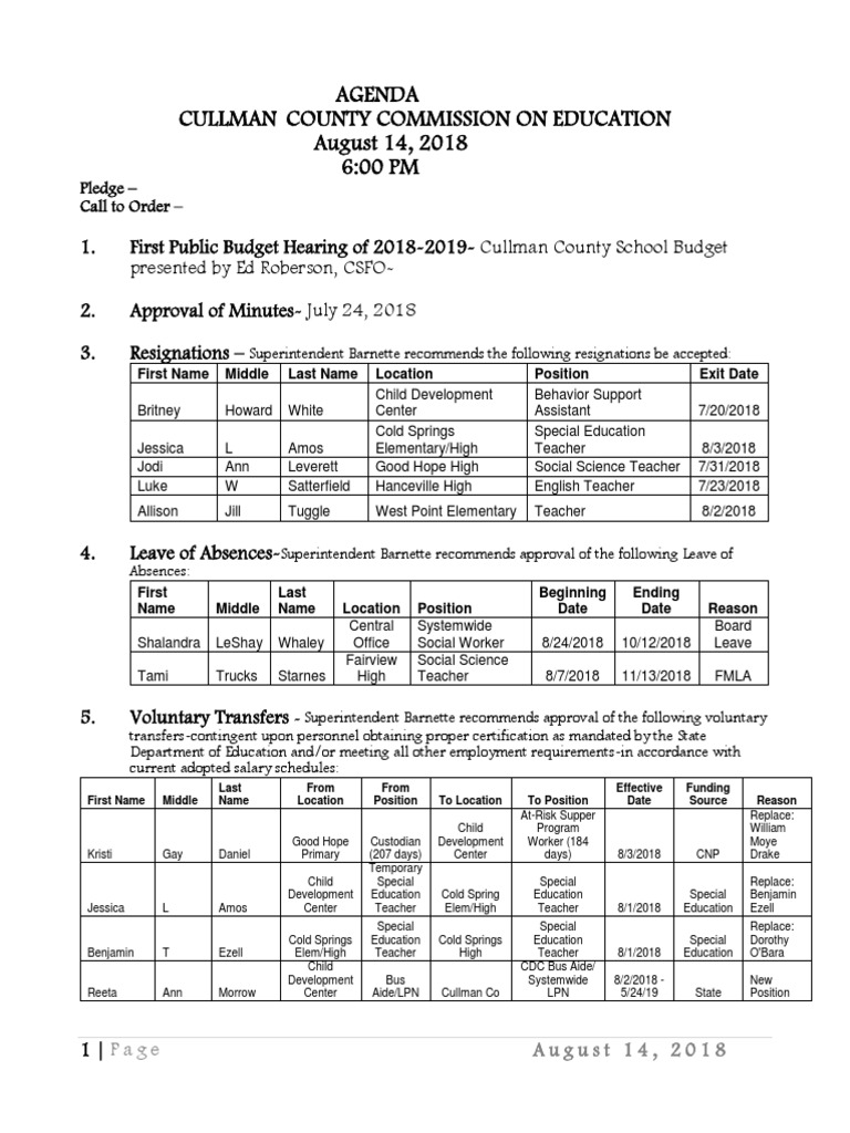 CCBOE Agenda 8.14.18 PDF Educational Organizations Schools