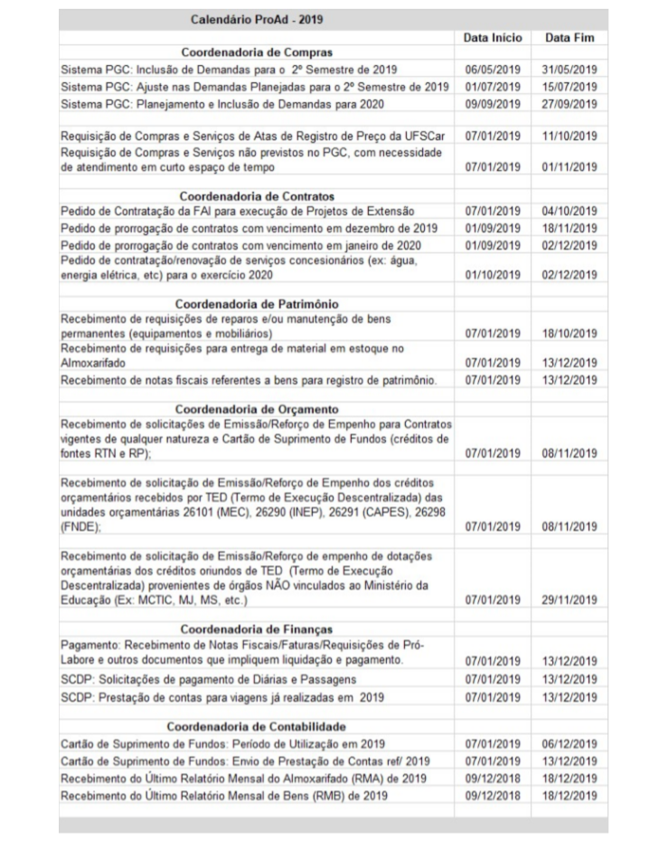 Prazos e calendários — Centro de Ciências e Tecnologia para a