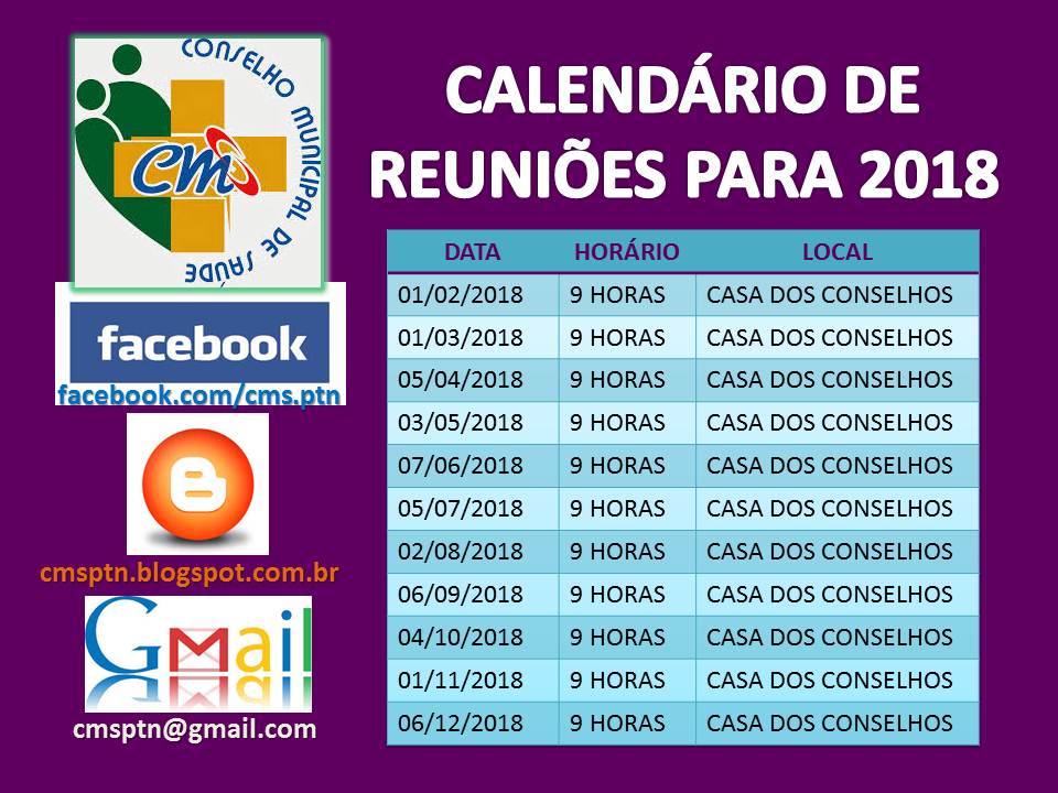 CMS PTN Calendário de Reunião dos Conselhos Municipais da Casa dos