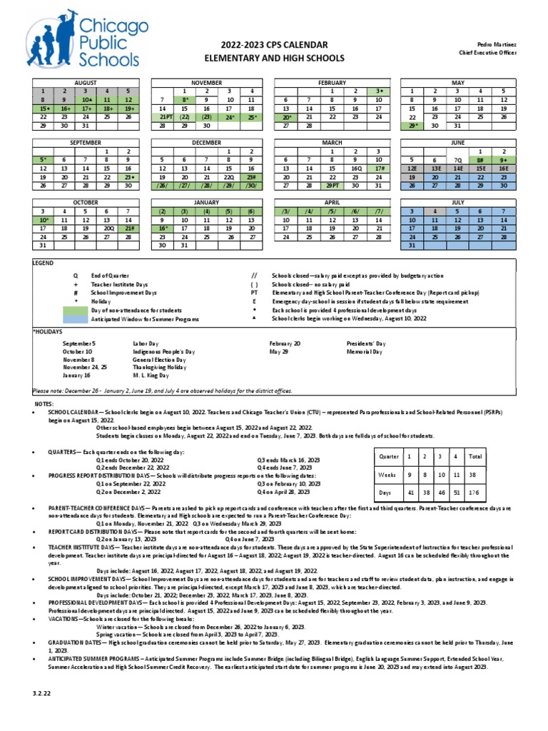 Sy2022 2023 Cps Academic Calendar Elementary and High Schools English PDF