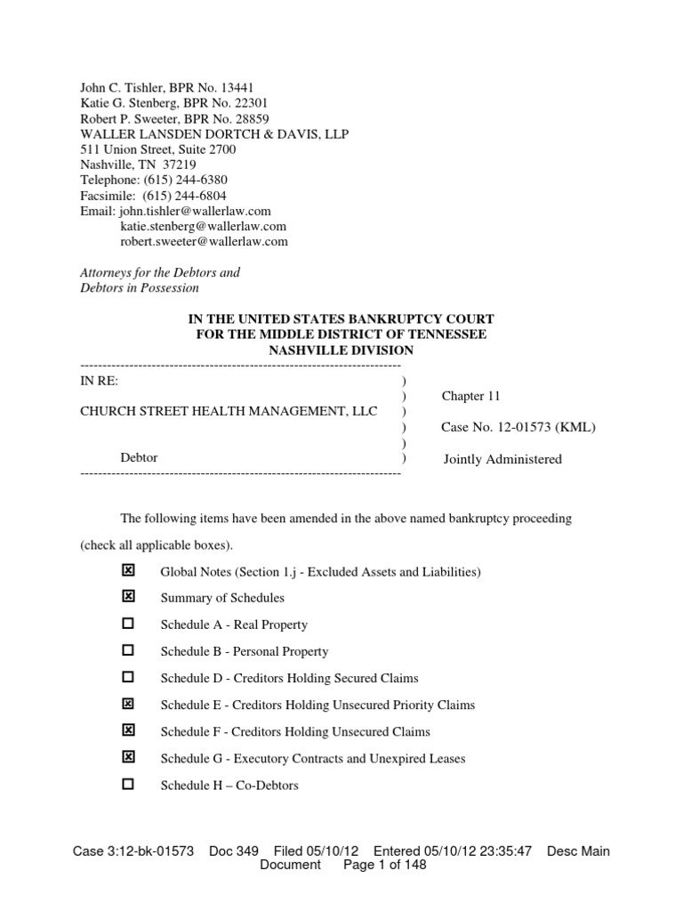 349CSHM Updated Schedules A Thru H PDF Bankruptcy Bankruptcy In