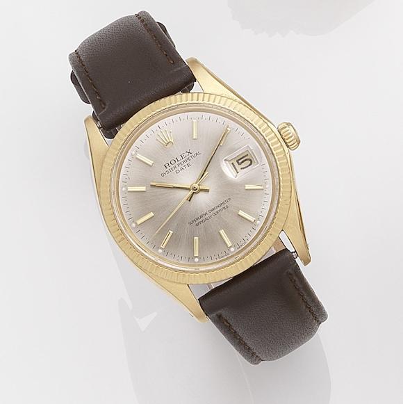 Bonhams Rolex. An 18k gold automatic calendar wristwatch Date