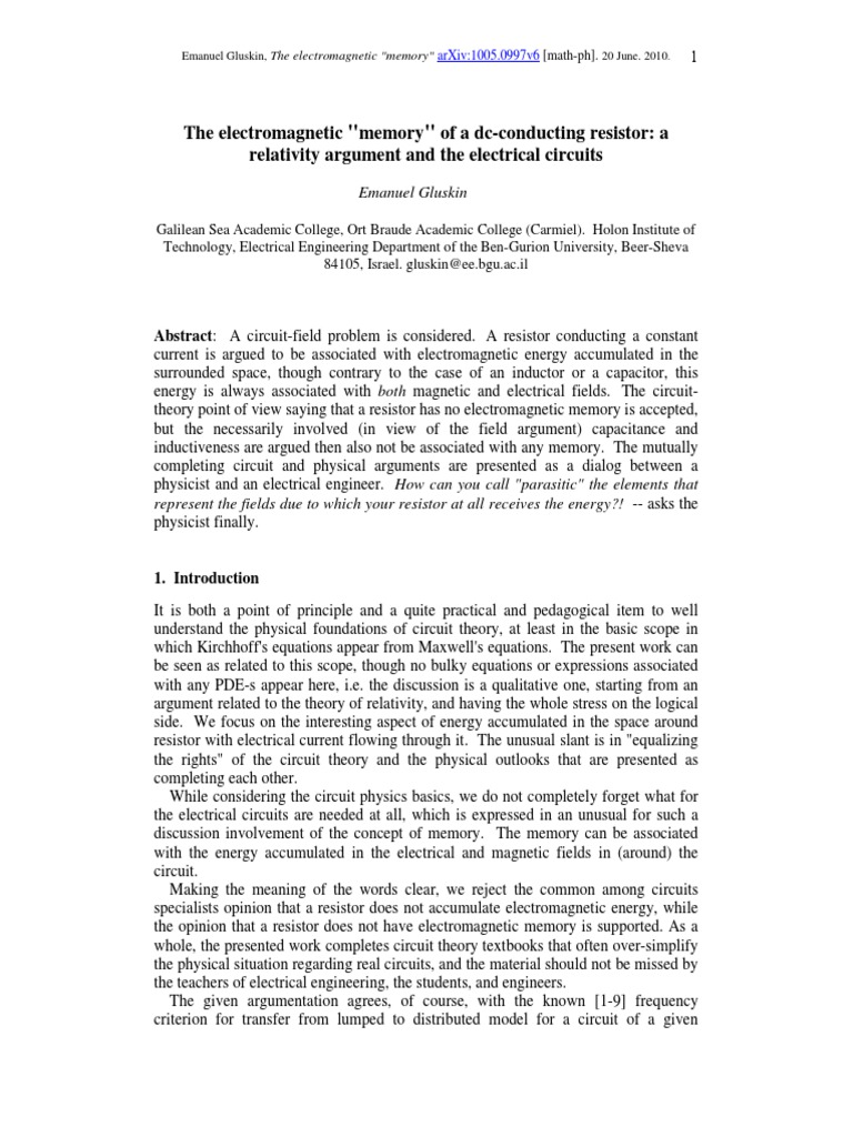 The Memory of A DcConducting Resistor A Relativity