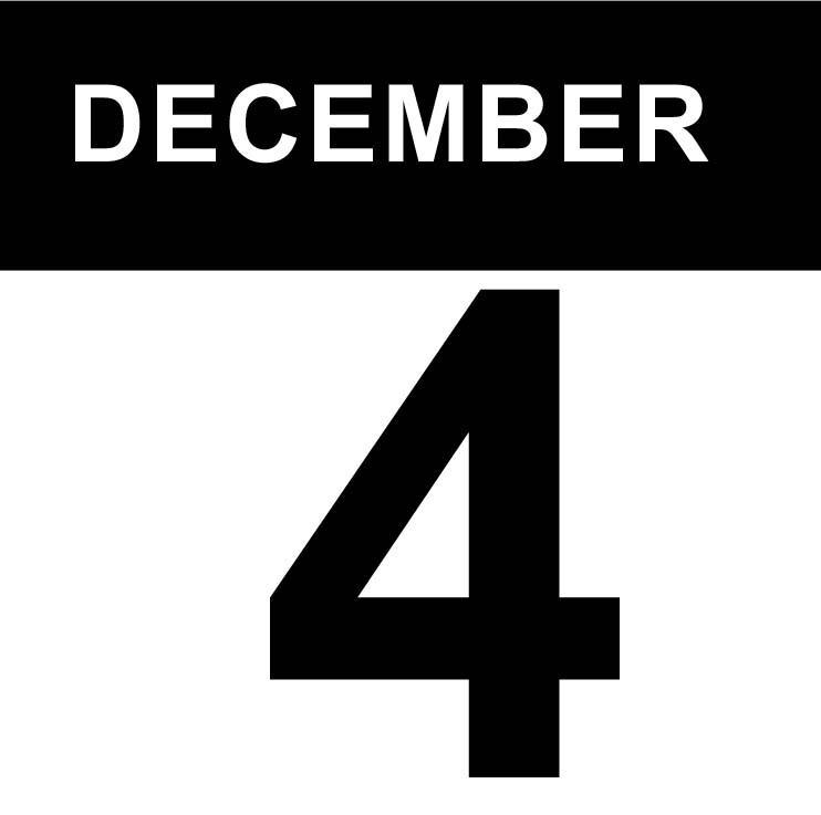 See what historic, important and momentous events in history happened on december 4. Sun 12/1 mon 12/2 tue 12/3 wed 12/4 thu 12/5 fri 12/6.