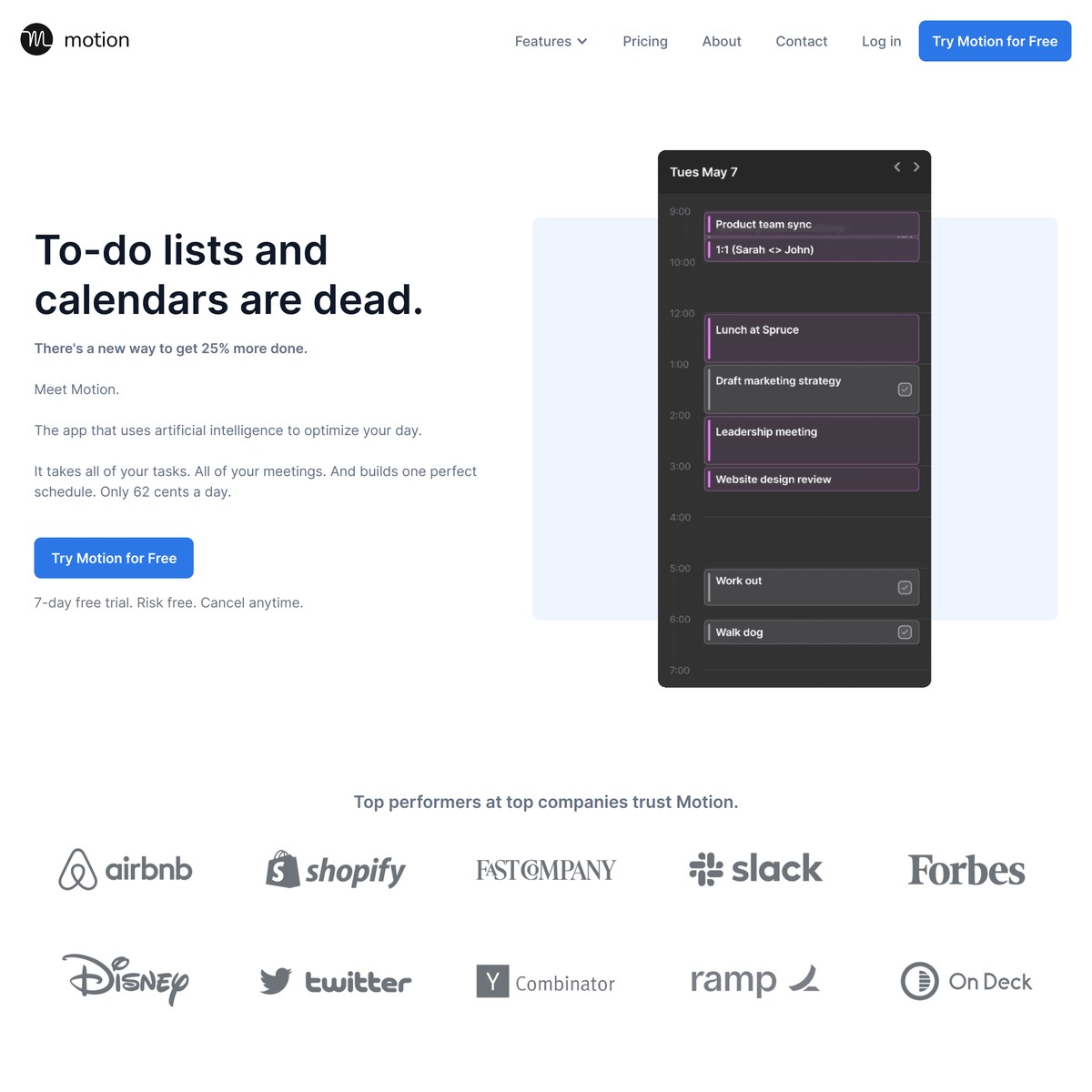 Motion uses automation and ai to intelligently. It was designed for busy people who need to manage their time more. The planner loses hours planning.