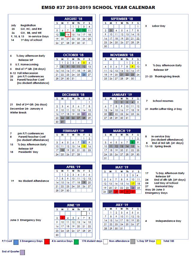 East Moline Schools on Twitter "Corrected 201819 calendar. There was