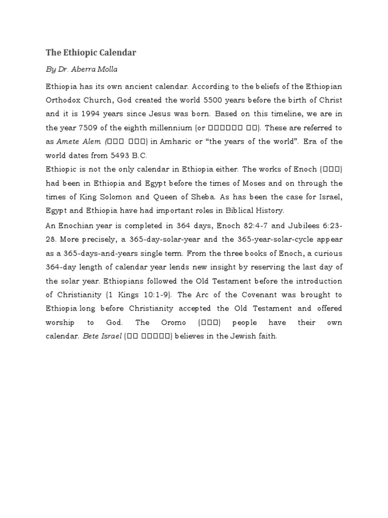 The Ethiopic Calendar PDF Anno Domini Calendar