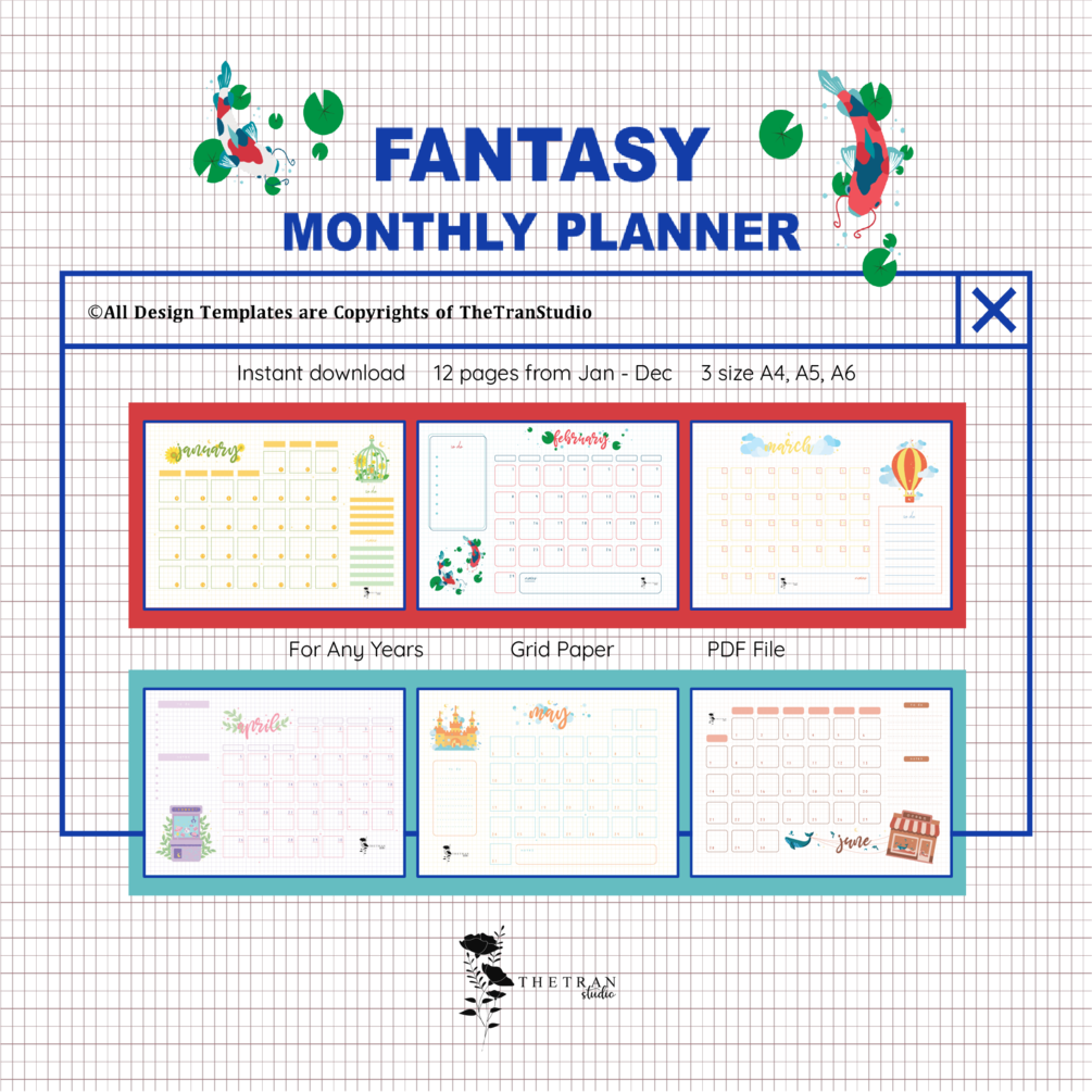 Fantasy Calendar Monthly Planner Digital Printable Product