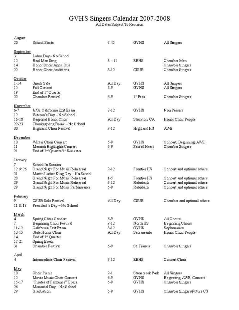 GVHS Singers Calendar 2007 PDF Choir Performing Arts