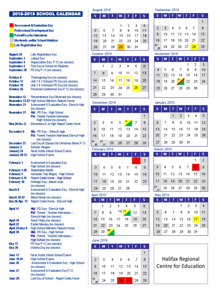 Assessment & evaluation day (a & e day) professional development day (pd day) parent/teacher interviews (p/t interviews) weekends. © 2024 halifax regional centre for education • the last day of school for students is friday, june 28, 2024. S m t w t f s s m t w t f s.
