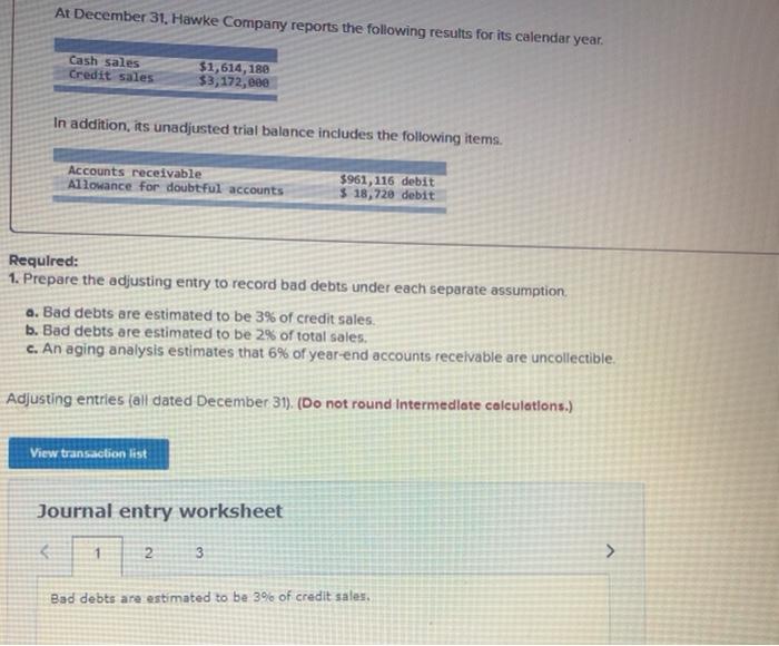 Solved At December 31, Hawke Company reports the following