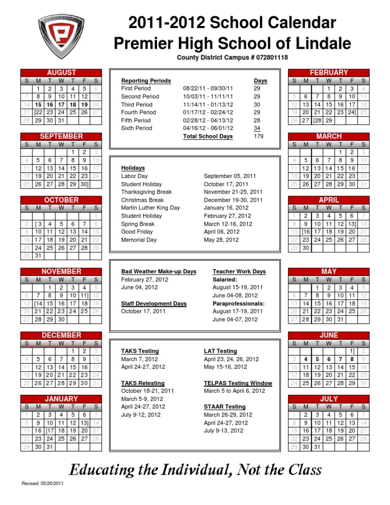 20112012 Calendars Premier Lindale PDF