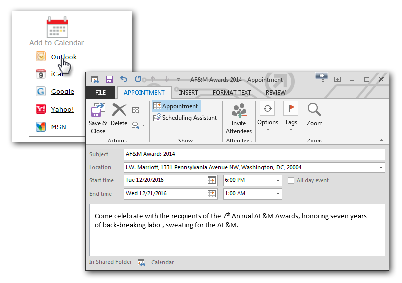 Inserting an Add to Calendar Link in Your Event