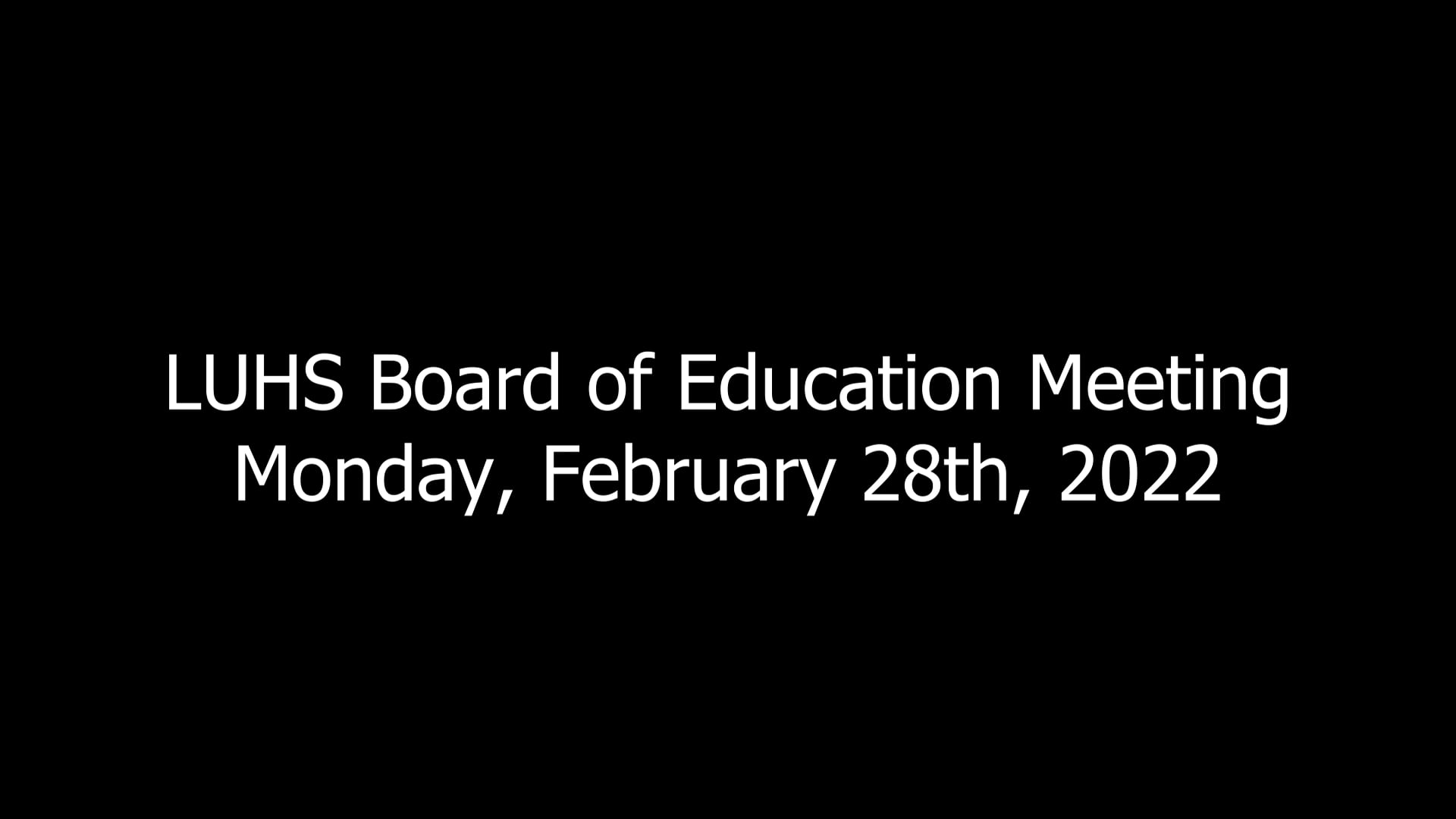 LUHS Board of Education Meeting Monday, February 28th, 2022.mp4 on Vimeo