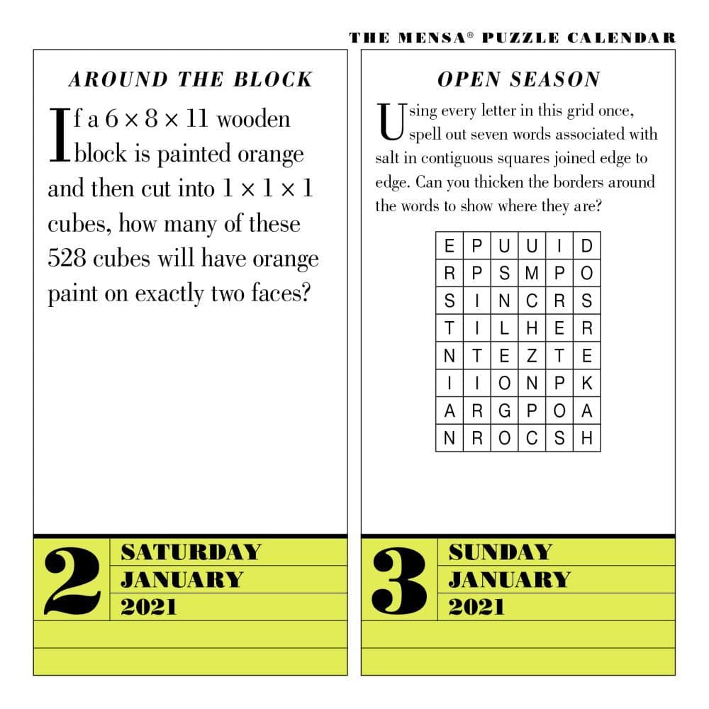 Mensa Calendar - It features a new puzzle every day. Click here to for information on how to program it into our calendar event scheduler! Download infographic (pdf | 223.09 kb) un office for the coordination of humanitarian affairs. Web test your mental mettle with word ladders and squares, rhyme schemes, secret codes, pangrams, mazes, clever sudoku variations, and math riddles that work every brain cell: Word puzzles, logic challenges, number problems, and more. Are you a mensa member and want to schedule your own mensa event? Check the calendar for the next regional gathering, mind games ®, or american mensa committee meeting. The perfect gift for any smartypants. A brain busting year of tough pangrams, word ladders, logic challenges, number sequences, and more. Just enter your mensa member number and.