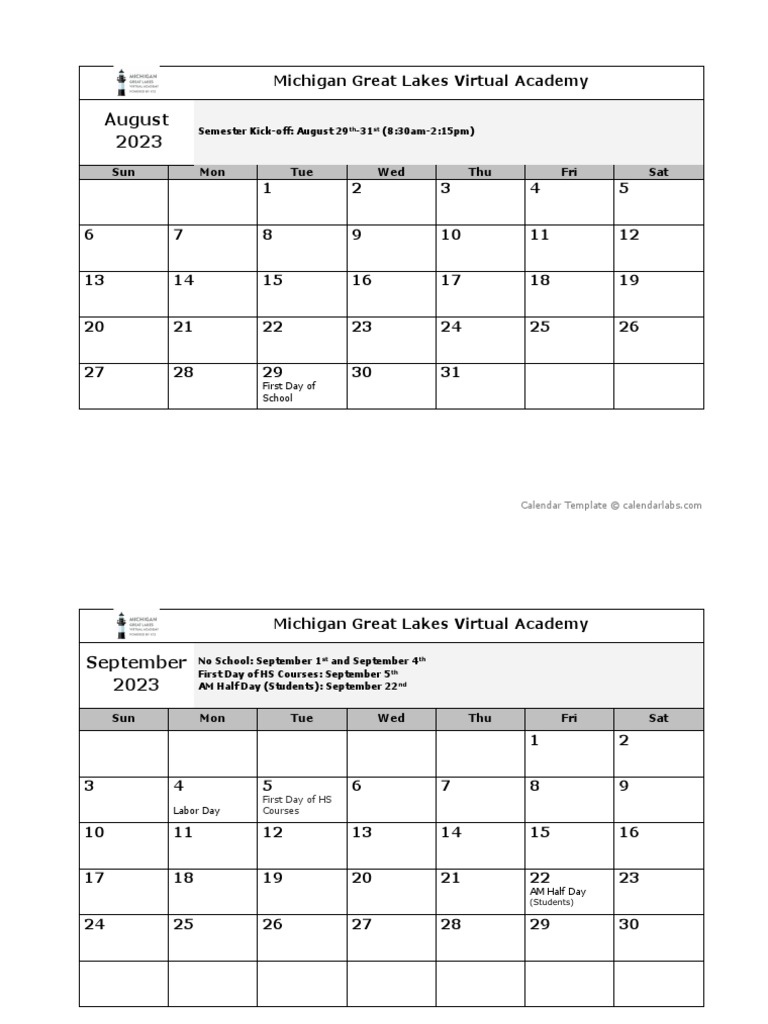 For most families, the new school year comes. Web view the online calendar for michigan great lakes virtual academy, a public online school in michigan..