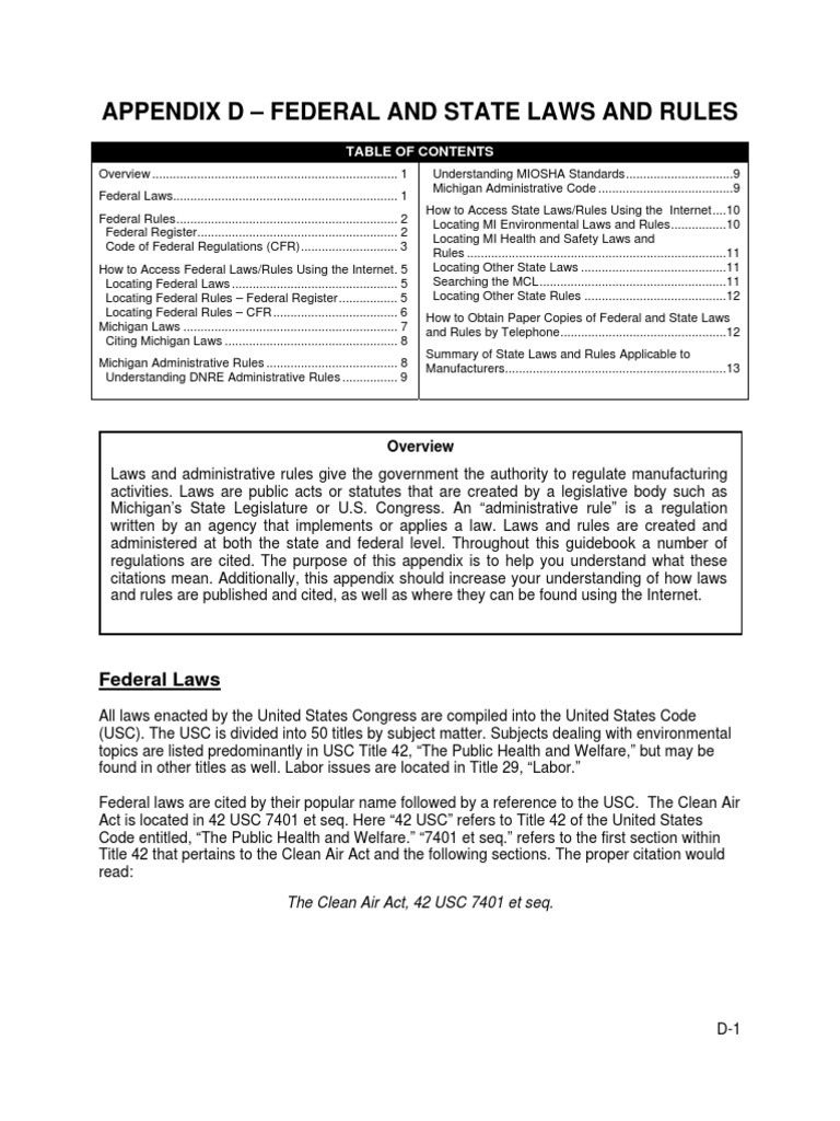 Guide to Michigan Laws & Rules Federal Register Law Of The United