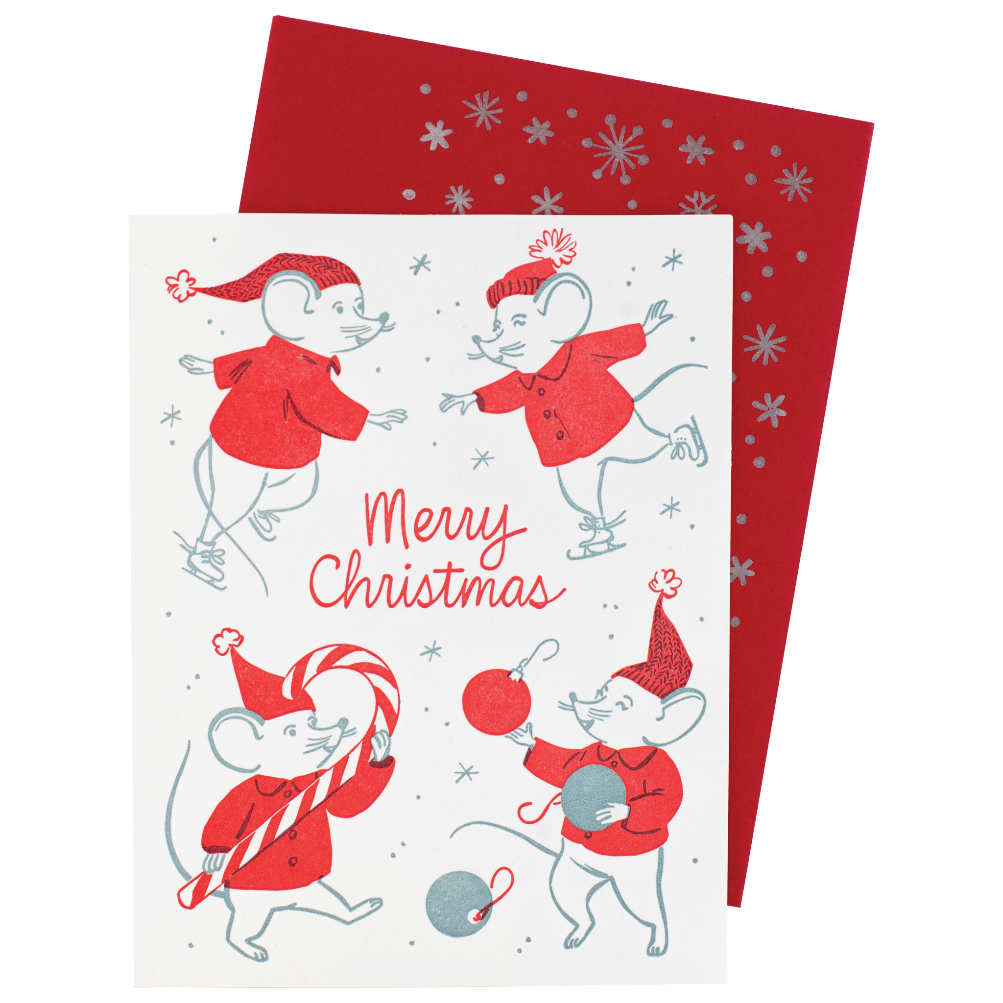 Festive Mice Christmas Card with Printed Envelope Smudge Ink