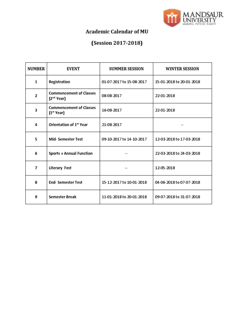Academic Calendar of MU 20172018 PDF