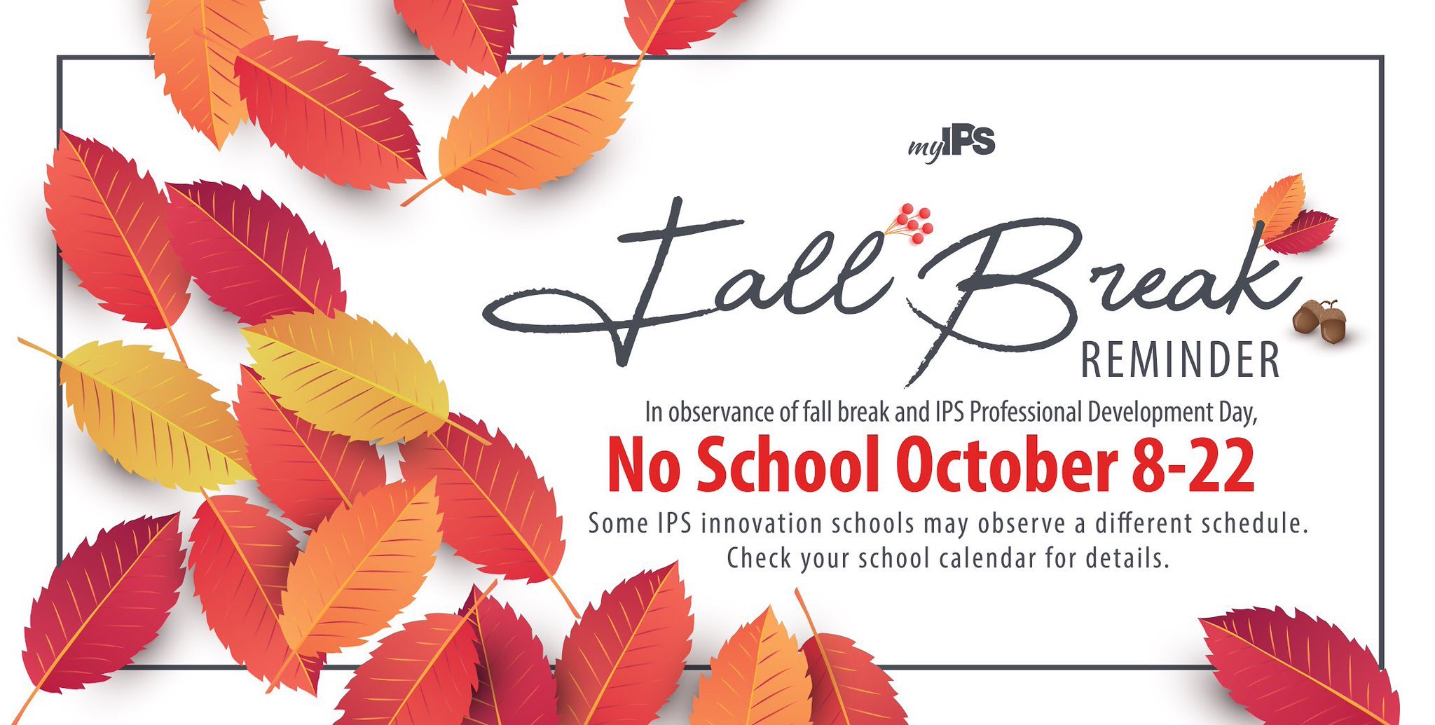 IPS on Twitter "REMINDER No school October 822 in observance of