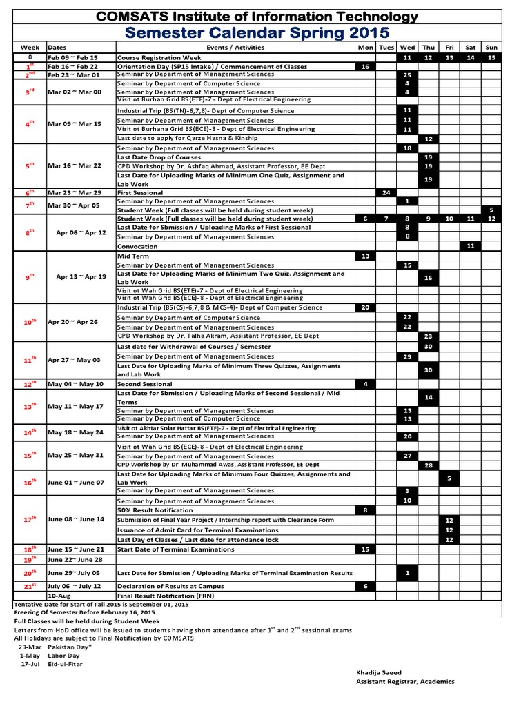 Semester Calendar Spring 2015 ST ND PDF Academic Term Academia