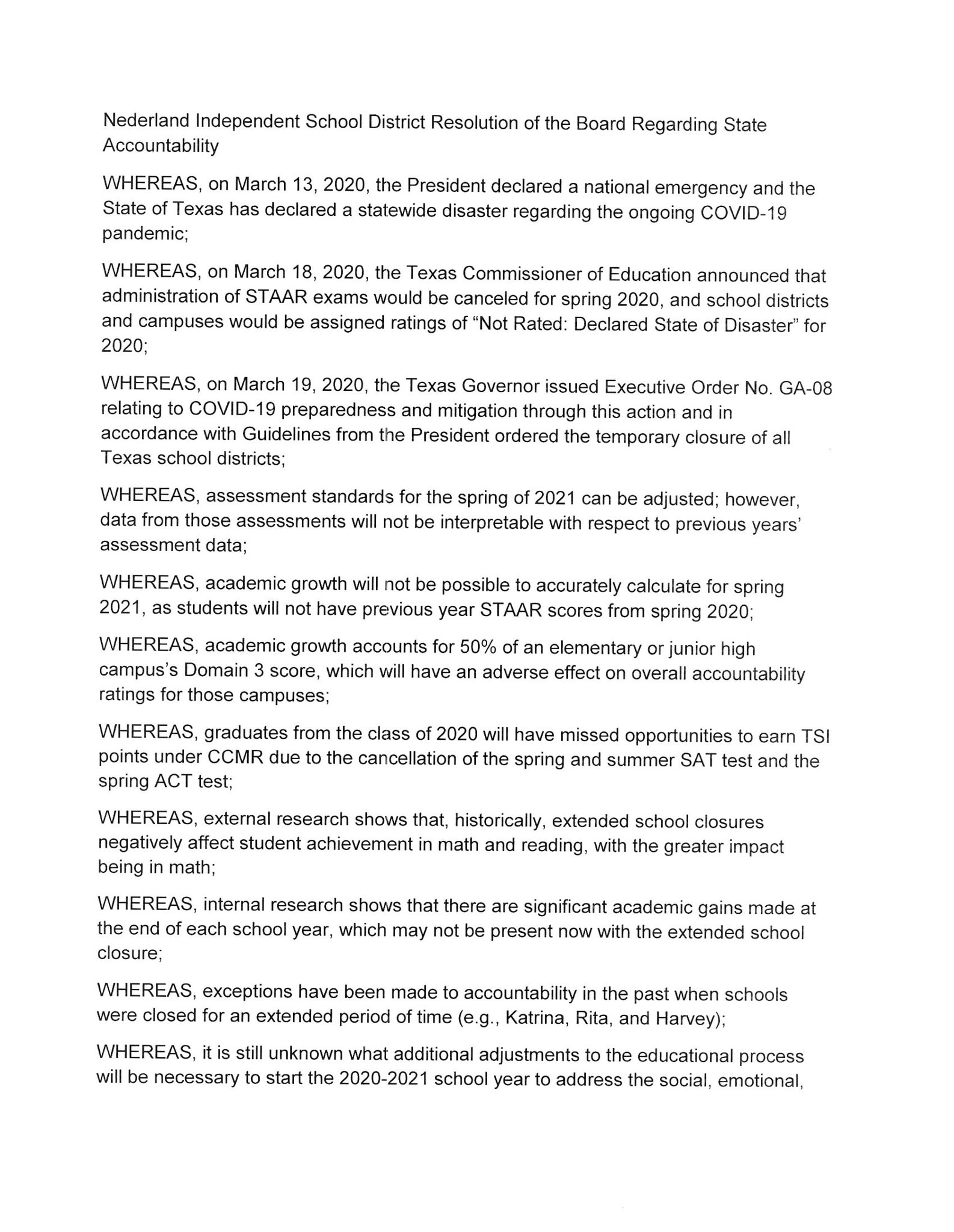 Nederland ISD on Twitter "June 15, 2020, the NISD Board of Trustees
