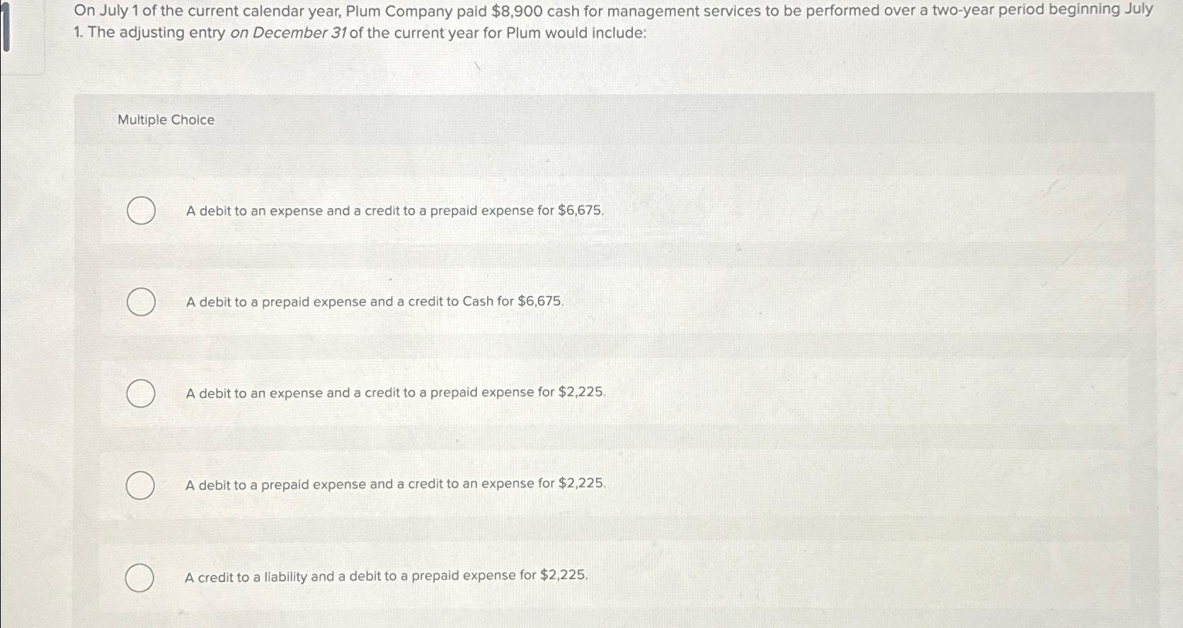 As Plum Company Paid $8,900 For 2 Years Contract On July 1, The Number.