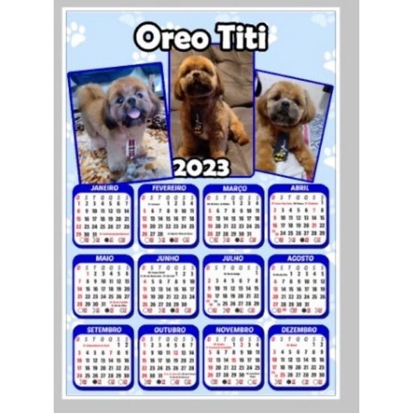 Calendário 2024 Personalizado plastificado Foto Pet/cachorro/gato