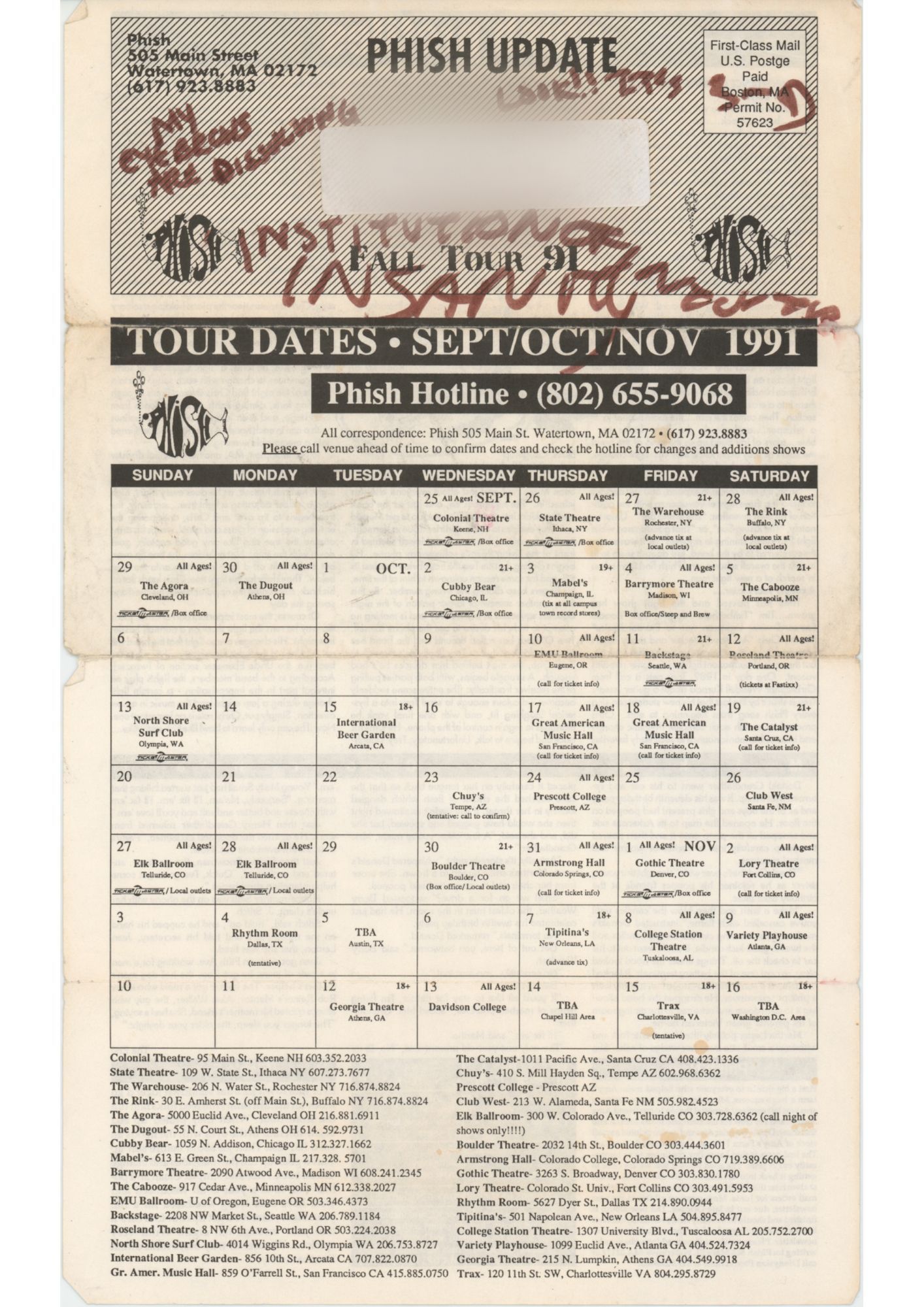 Phish Calendar Mailer for 1991 Value GoCollect (phishcalendarmailer