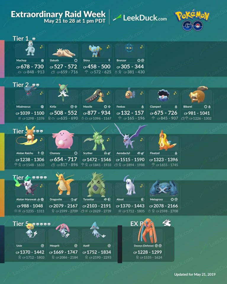Niantic has revealed the may schedule for raids, and there are some exciting battles to be had! Web if you want to catch any of.