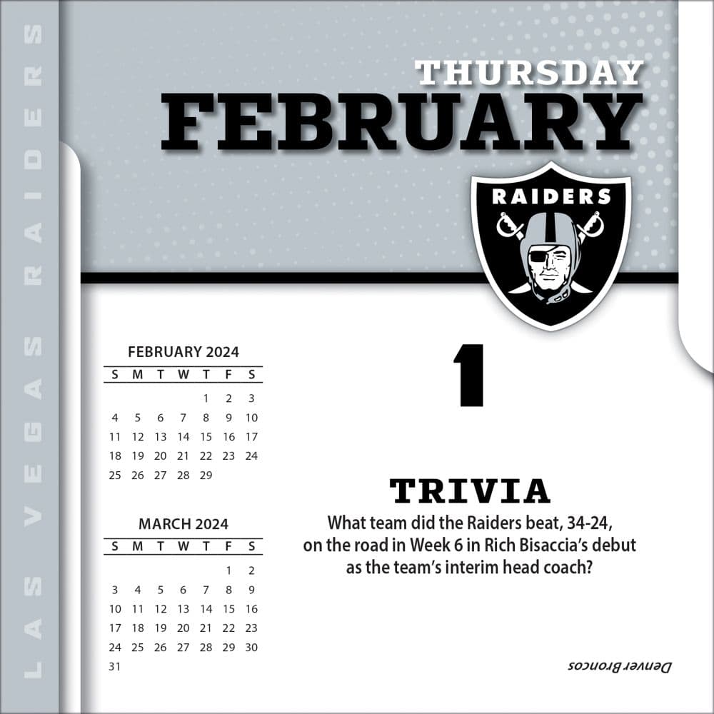 Raiders 2024 Calendar - Web the nfl released its 2024 season schedule in full on wednesday evening, and las vegas raiders fans have several notable dates to circle on the calendar. Web view the 2024 las vegas raiders schedule at fbschedules.com. Made with exceptional quality, the 12x12 calendar also includes bonus pages that. Run game coordinator), marvin lewis (assistant head coach), joe philbin (senior offensive asst.), rob ryan. May 17, 2024 | 3:20 pm edt. The silver and black will host eight home games at allegiant stadium next season. Web espn has the full 2024 las vegas raiders regular season nfl schedule. Date, time, and tv network will be released in the coming months with the rest. Web the 2024 dates have been revealed. 3 (5 appearances) championships won*: