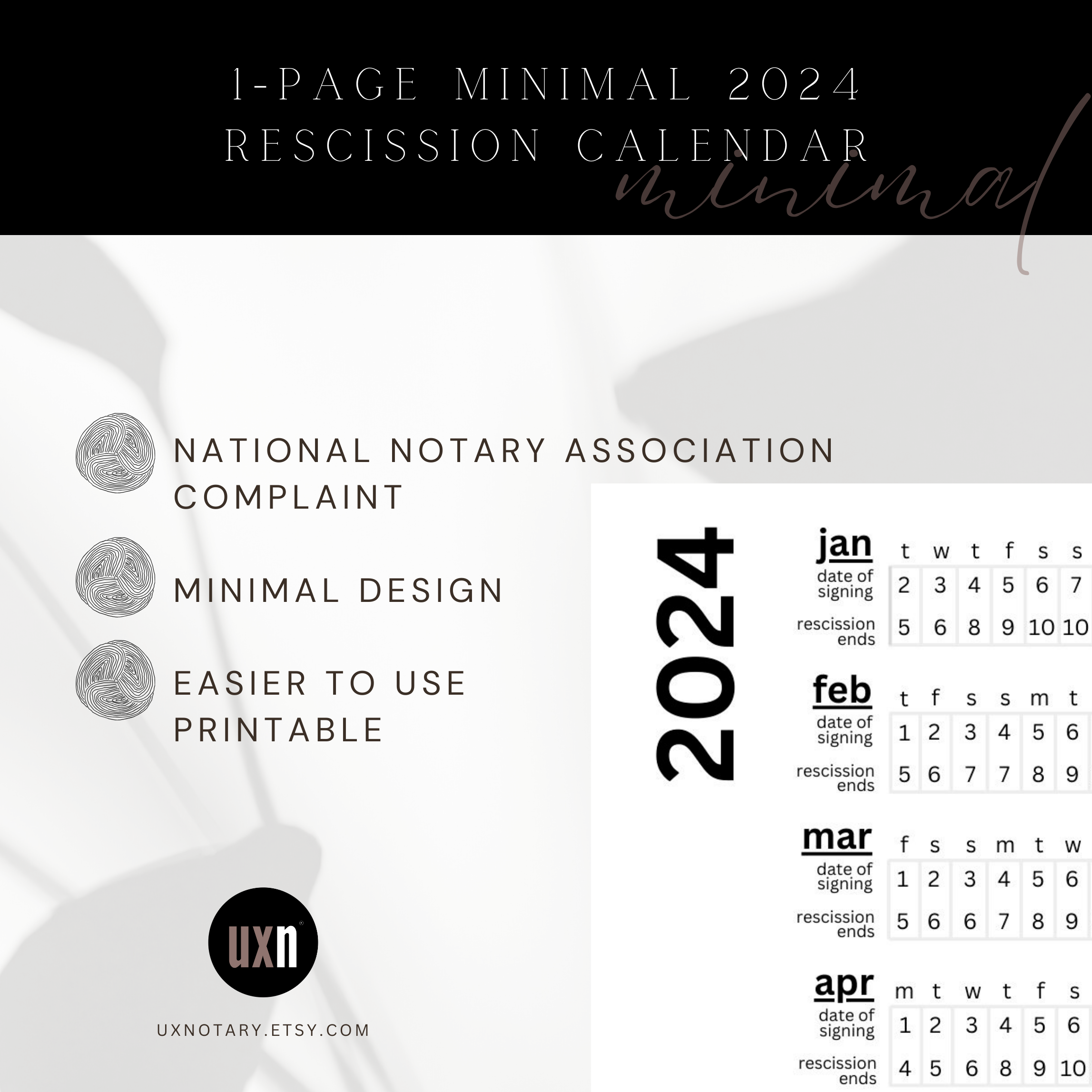 2023 Rescission Calendar for Loan Signing Agents Business Etsy
