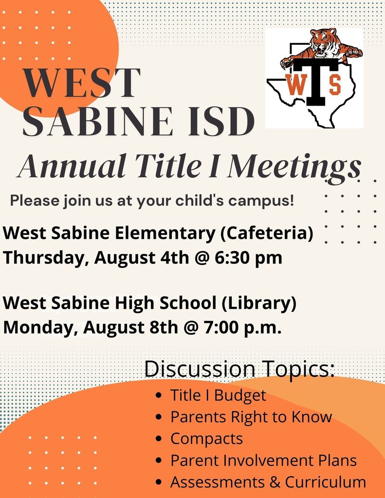 West Sabine ISD on Twitter "Annual Title I Fall Meetings https//t.co