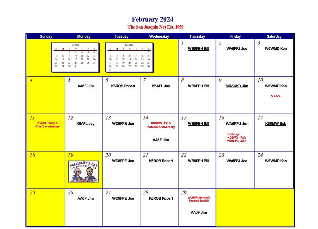 San Joaquin HF Net 3918 kHz Calendars