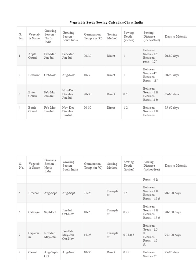 Vegetable Seeds Sowing or Planting Chart / Calendar Science Taj