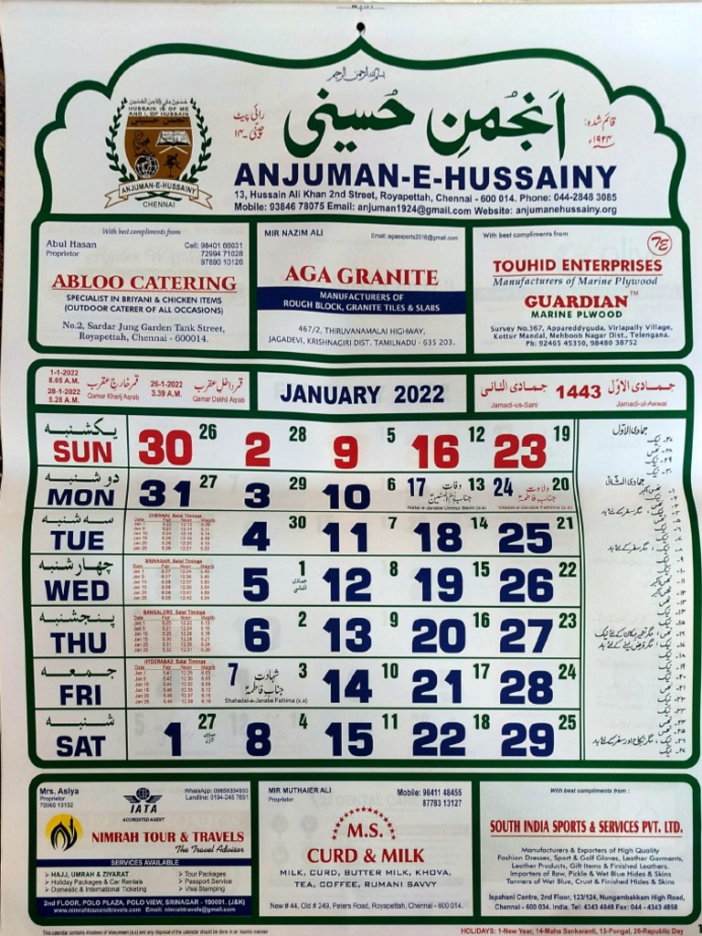 Anjuman e Hussaini Calendar 2022 1 PDF