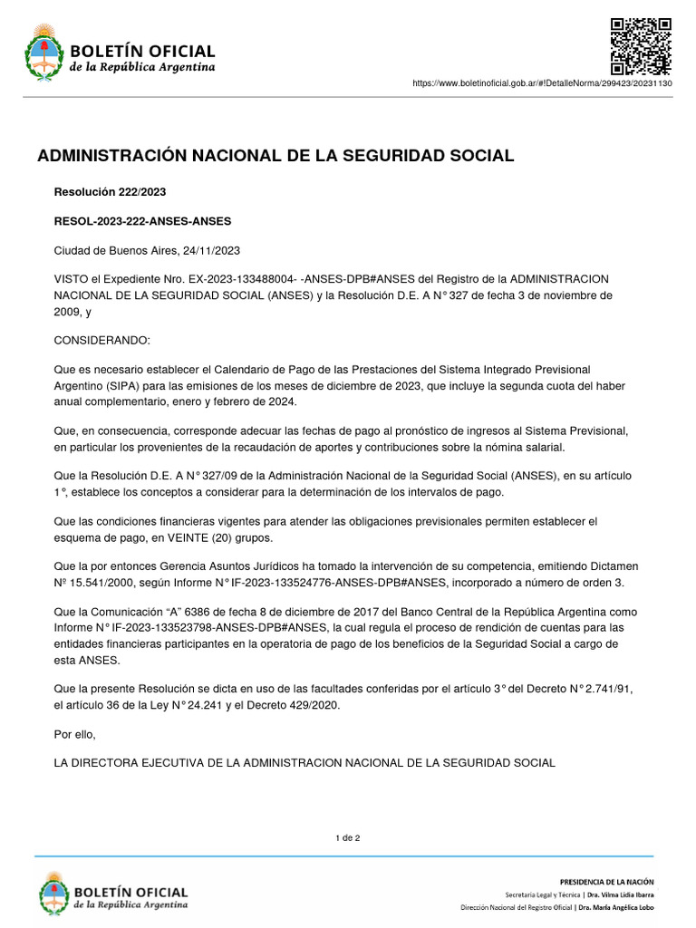 Reso 2222023 SIPA Calendario PDF Pensión Bienestar