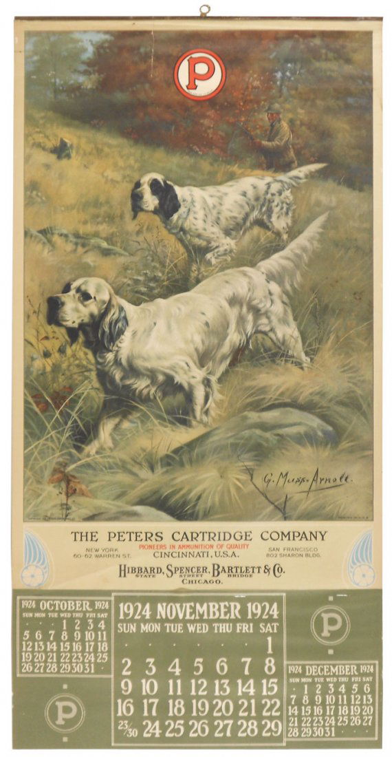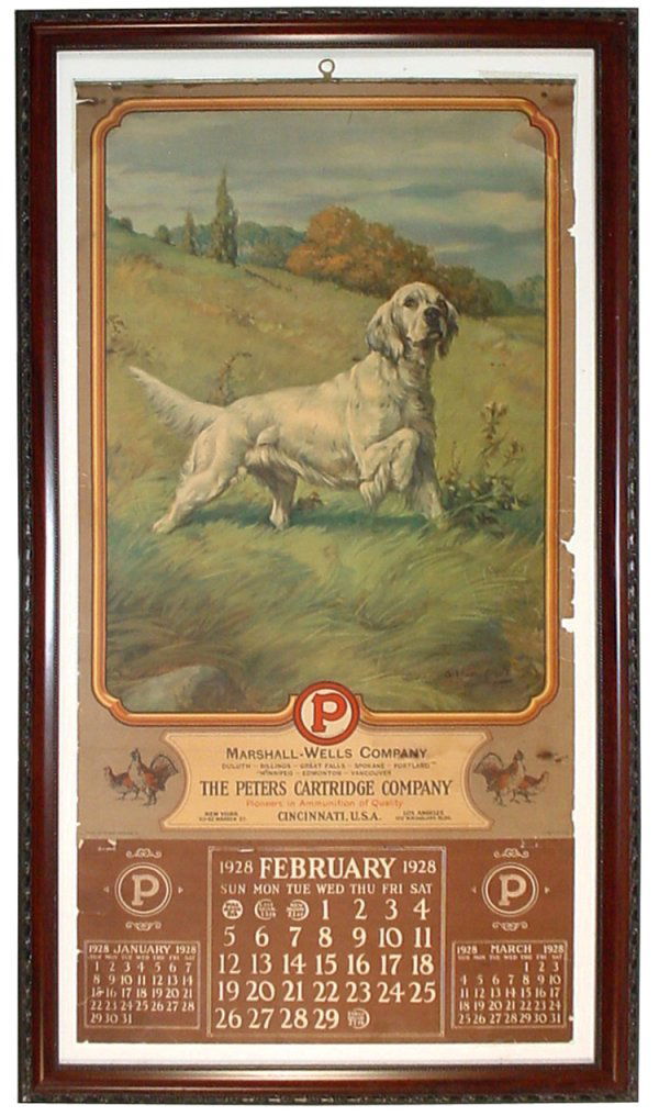 Lot PETERS CARTRIDGE COMPANY ADVERTISING CALENDAR 27” x 14”. Framed