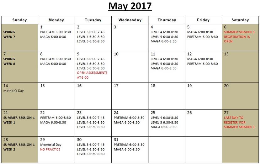 Calendar Summer Sessions