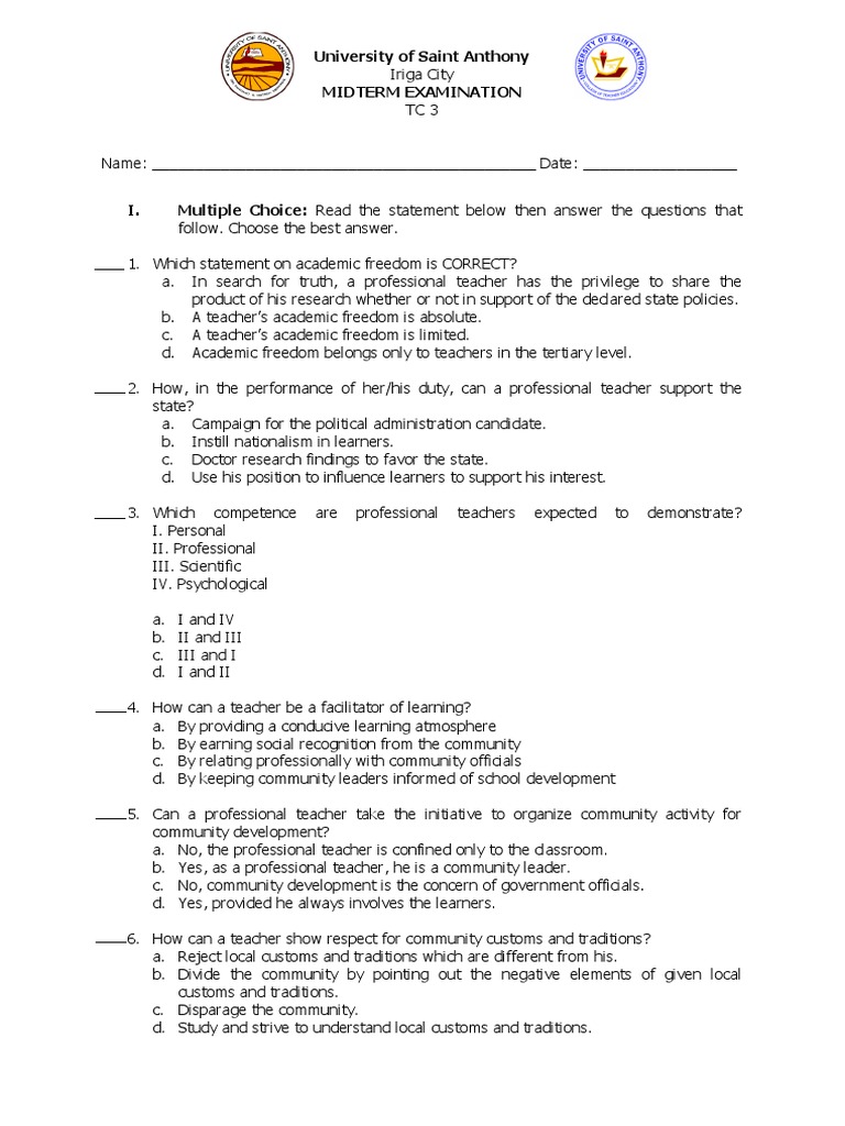 Admission Diagnostic Test (ADT) Schedule Junior High Ateneo de Davao