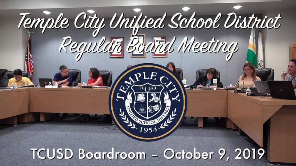 October 9, 2019 Temple City Unified School District Board Meeting on